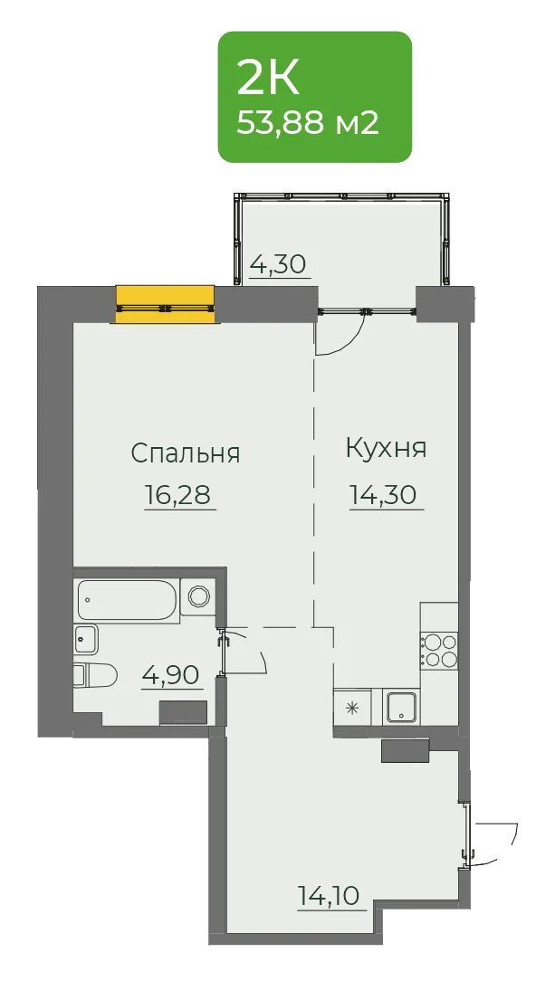 1-комнатная 53 м2