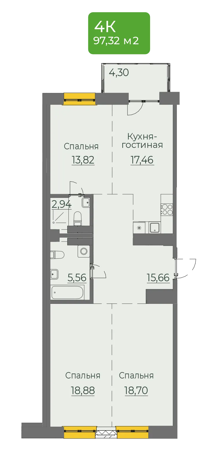 3-комнатная 97 м2