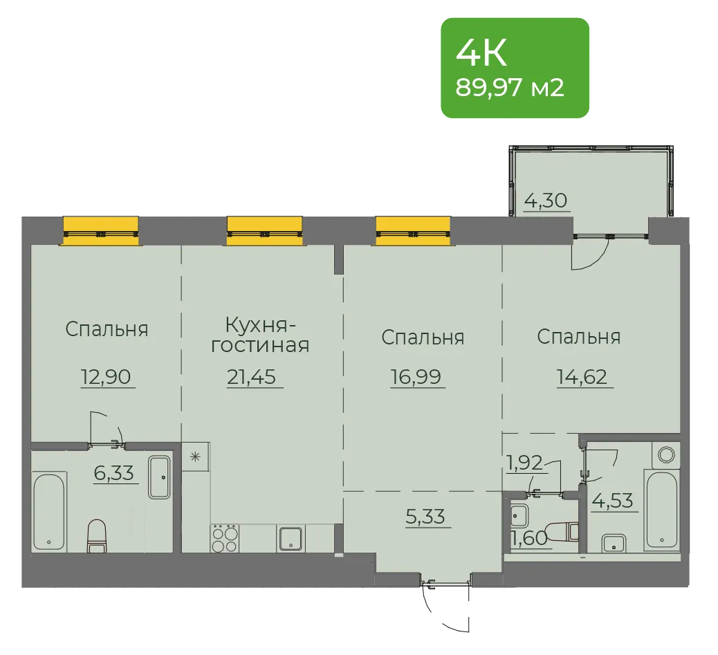 3-комнатная 89 м2